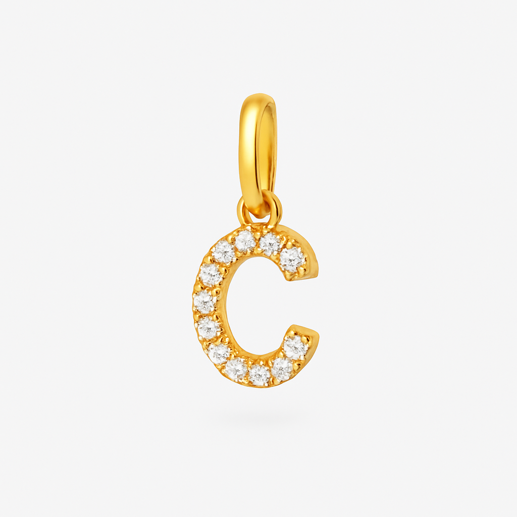 Pingente letra C de 5,5mm em ouro 18k com zircônias.