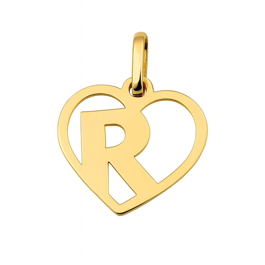 Pingente Letra R Coração vazado em ouro 18k
