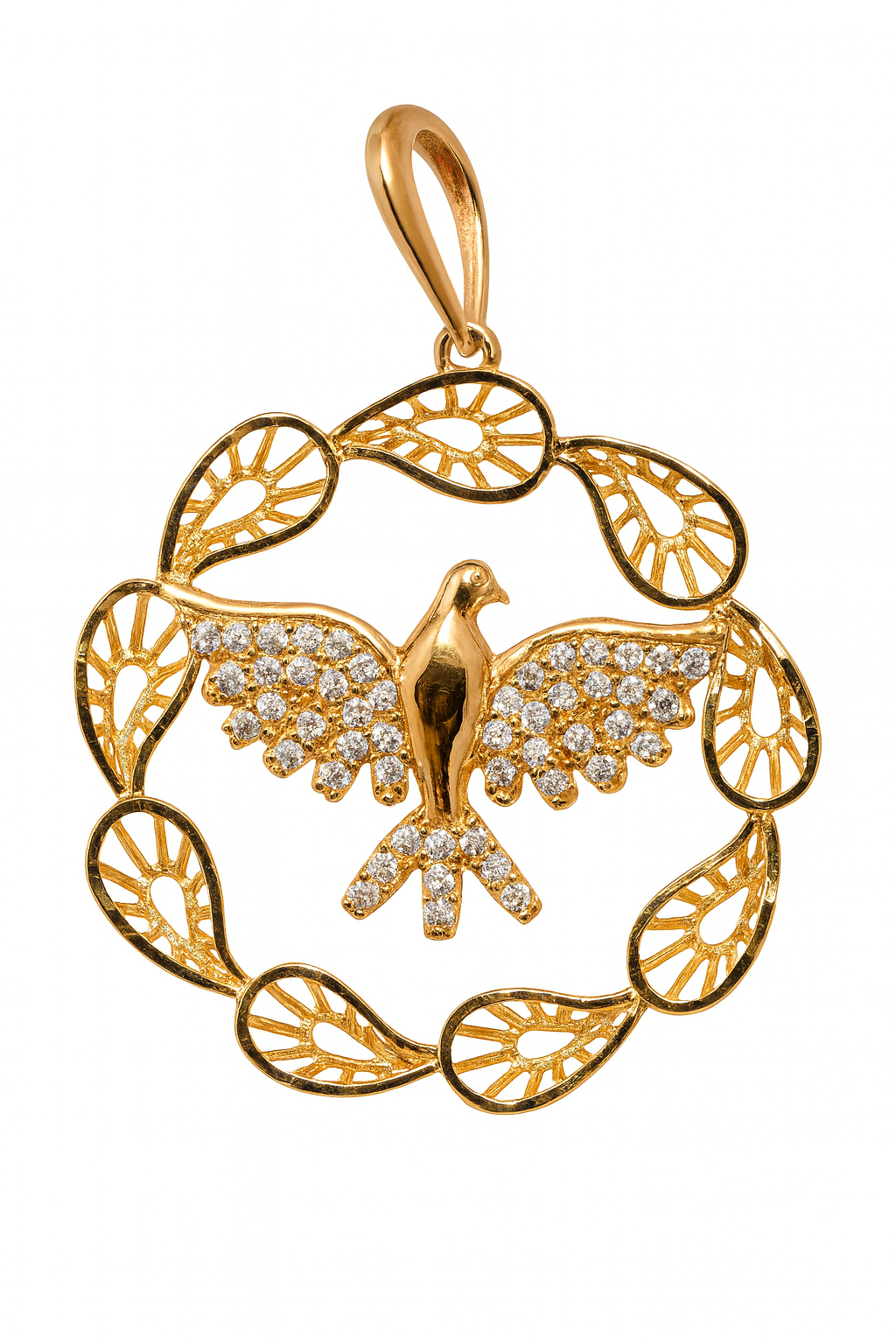 Pingente mandala Espírito Santo em ouro 18k com zircônias.