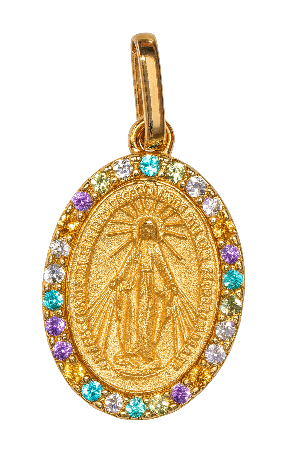 Pingente medalha milagrosa em ouro 18k com zircônias.