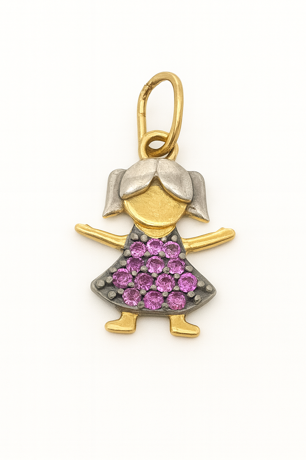Pingente menina em ouro 18k com zircônias.