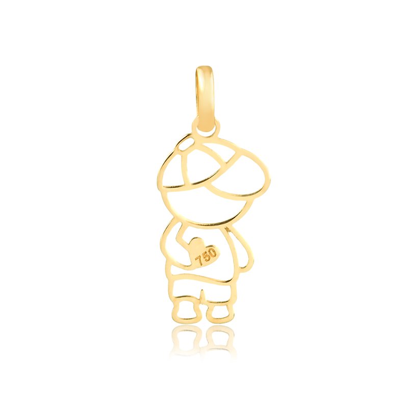 Pingente menino vazado coração em ouro 18k.