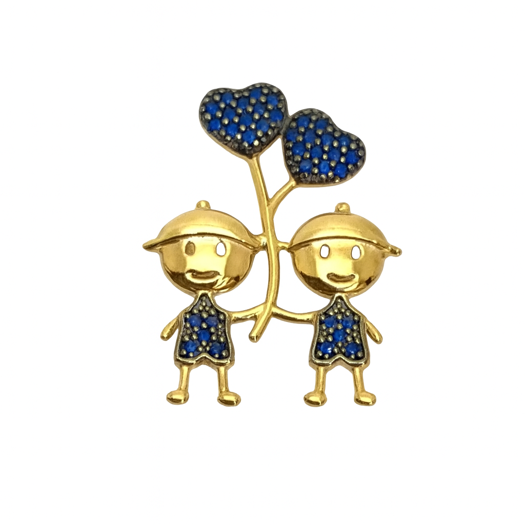 Pingente dois meninos com balão de coração em ouro 18k com zircônias.