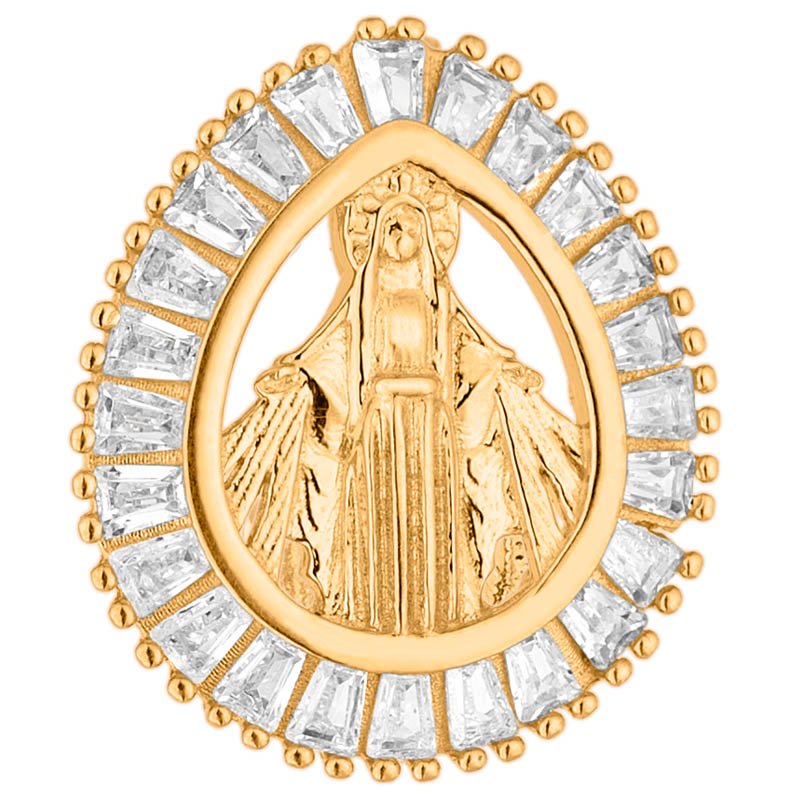 Pingente Nossa Senhora das Graças em ouro 18k com navetes zircônias.