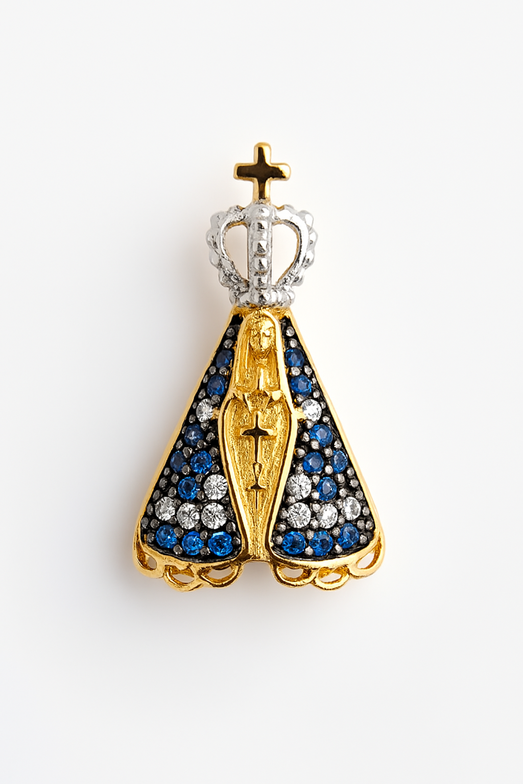 Pingente Nossa Senhora Aparecida em ouro 18k com zircônias.