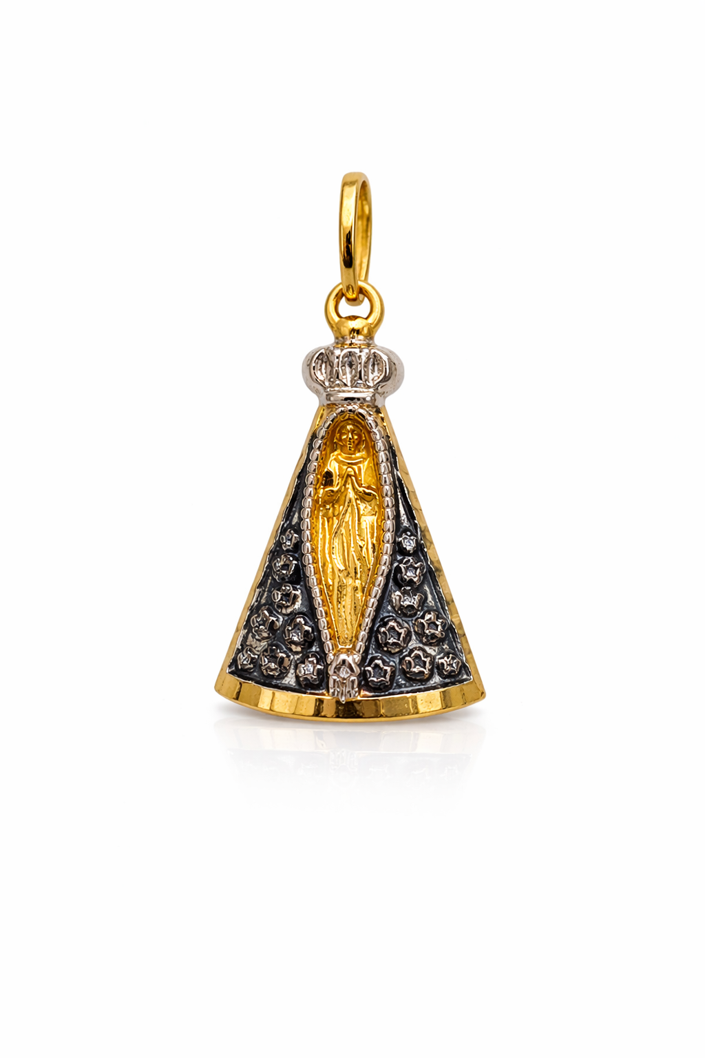 Pingente Nossa Senhora Aparecida esmaltada em ouro 18k.