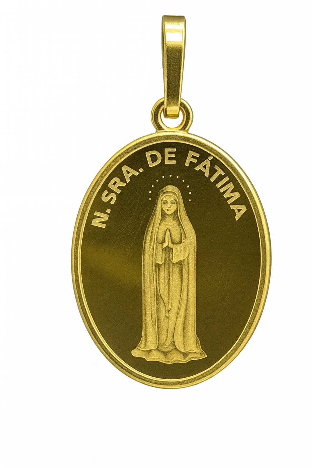 Pingente medalha Nossa Senhora de Fátima em ouro 18k.