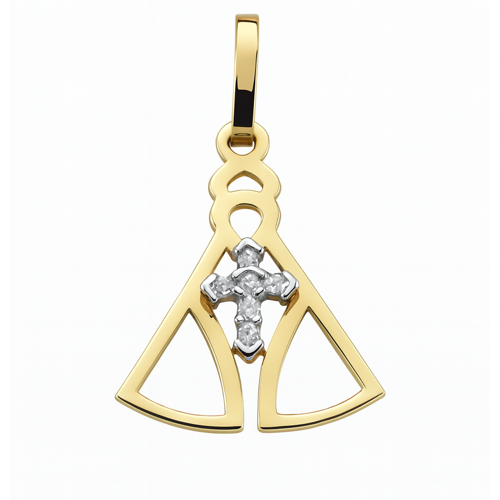Pingente Nossa Sra. Aparecida em ouro 18k com 6 Brilhantes.