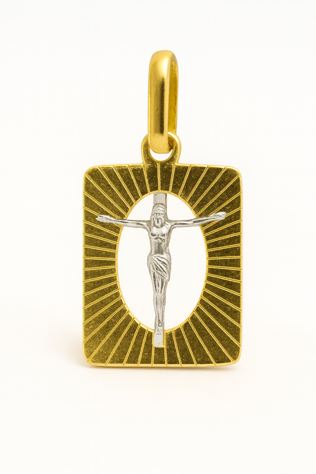 Pingente Placa Cristo em ouro 18k e ouro branco.