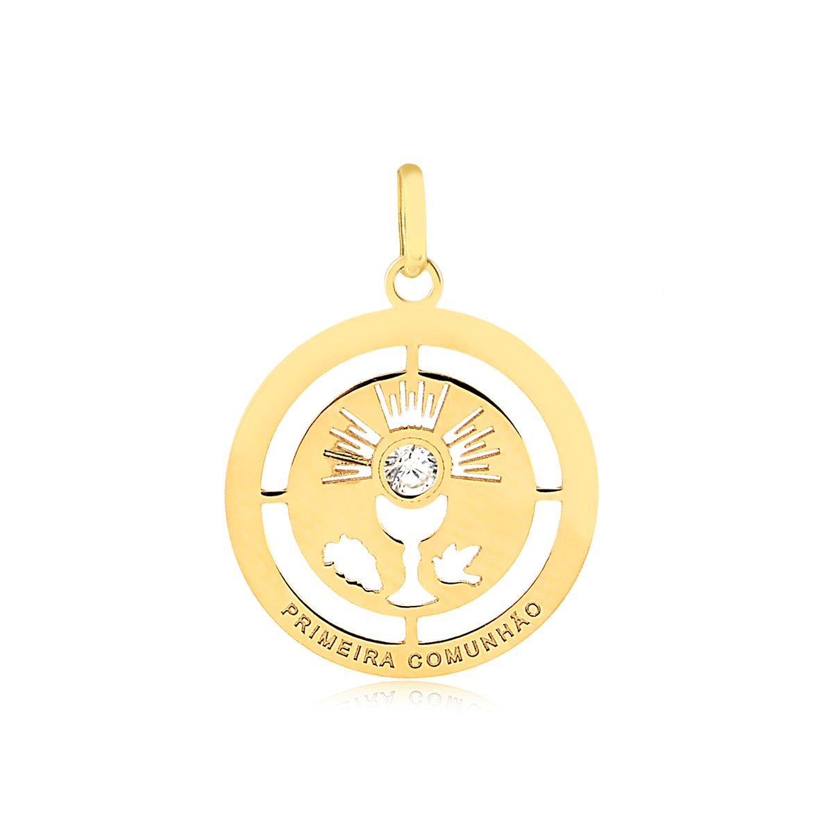Pingente primeira comunhão em ouro 18k com zircônia.