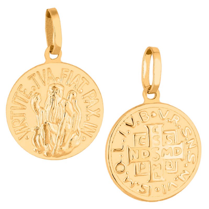 Pingente São Bento duplo PP em ouro 18k.