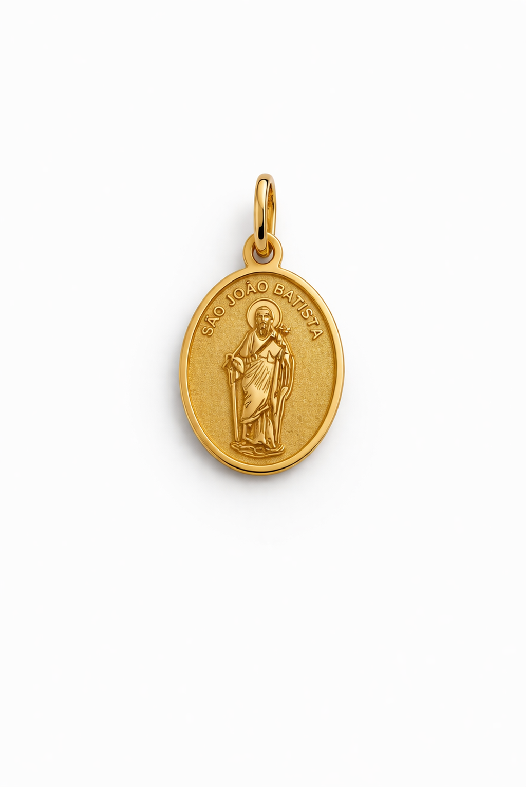 Pingente medalha São João Batista em ouro 18k.