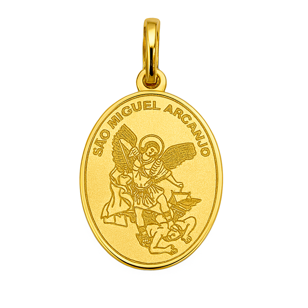 Pingente medalha São Miguel Arcanjo em ouro 18k.