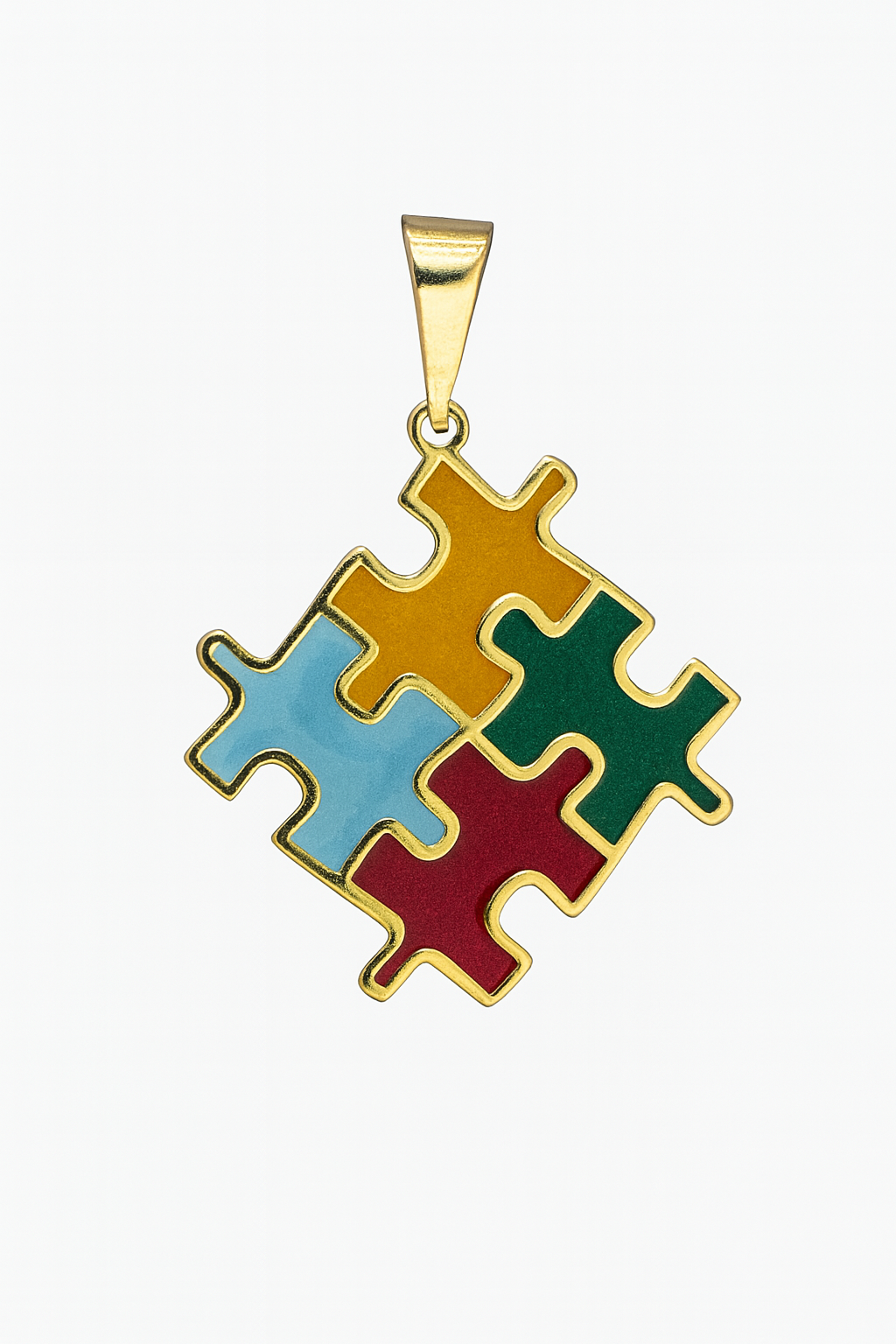 Pingente símbolo autismo esmaltado em ouro 18k.