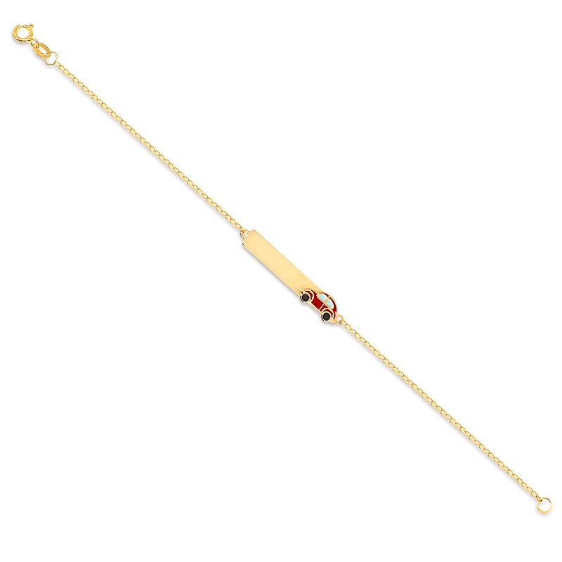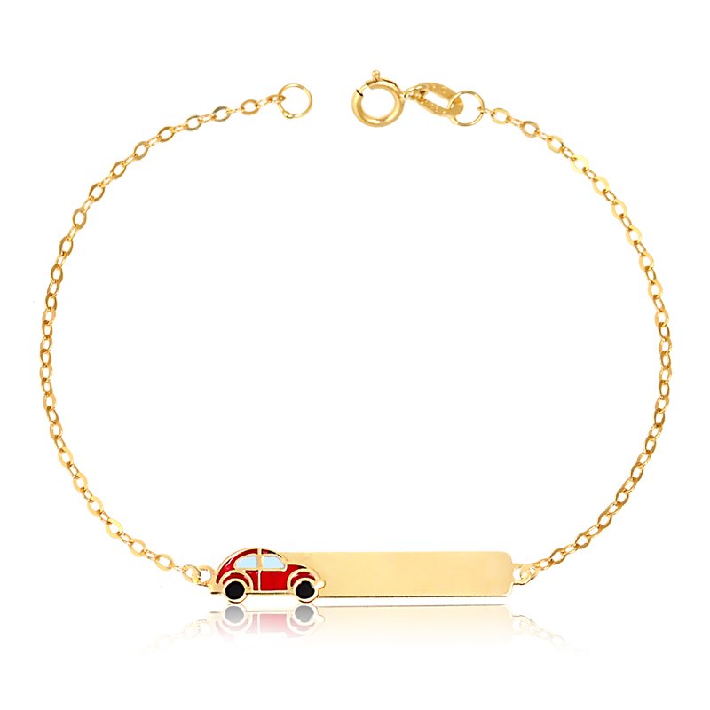 Pulseira portuguesa medindo 15cm com chapa em ouro 18k com carro azul esmaltado.