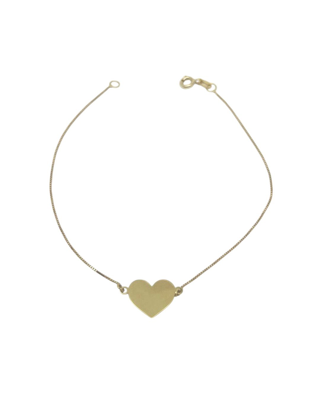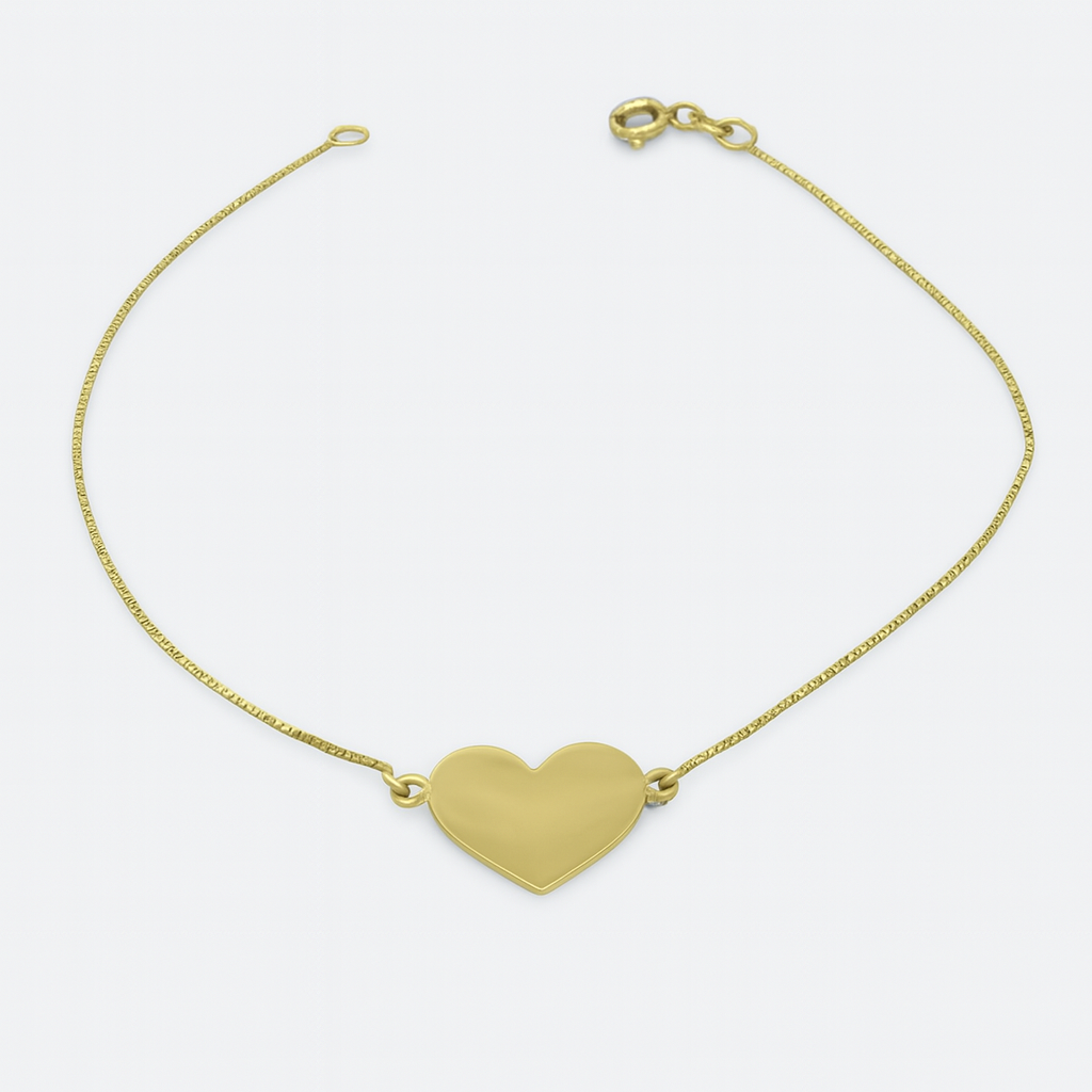 Pulseira veneziana de 19cm com coração em ouro 18k.